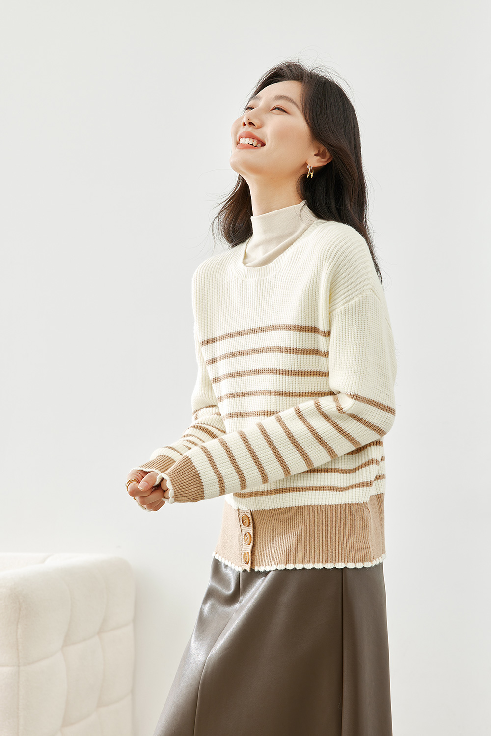 Round Neck Striped Knit Sweater