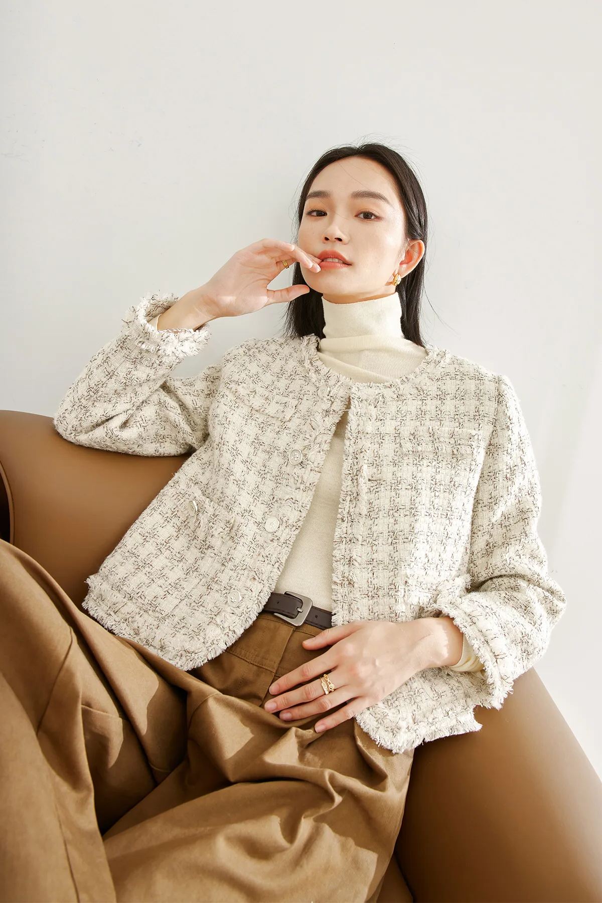 Tassel-Trimmed Round Neck Short Jacket