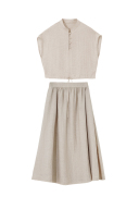 Half-Open Stand-Up Collar Top, Inner Tie At The Hem, Loose-Waist Umbrella Skirt, Non-Elastic Long Skirt