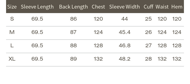 • すべての測定値は衣類を平らに敷いて手動で行われるため、サイズチャートと実際の衣類の測定値との間にはわずかな誤差が生じる場合があります。