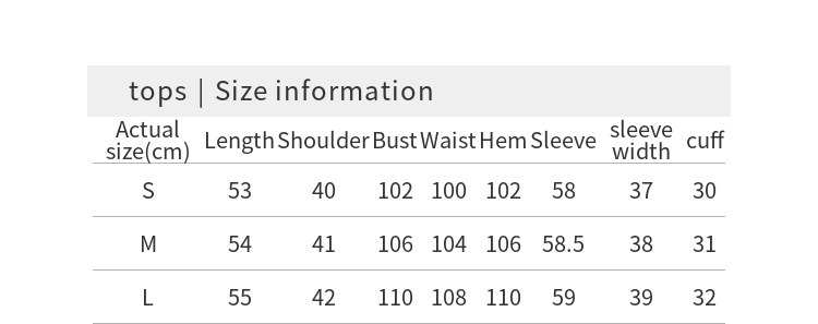 • As all measurements are taken manually with the garment laid flat, there may be slight errors between the sizing chart and the actual measurements of the garment.