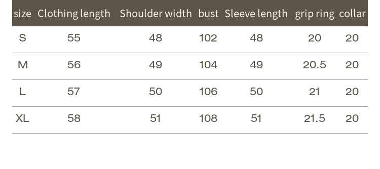 • As all measurements are taken manually with the garment laid flat, there may be slight errors between the sizing chart and the actual measurements of the garment.